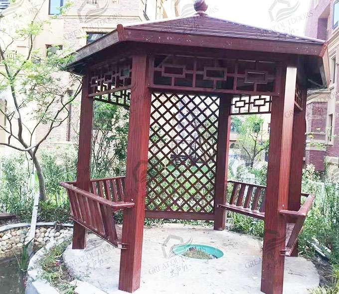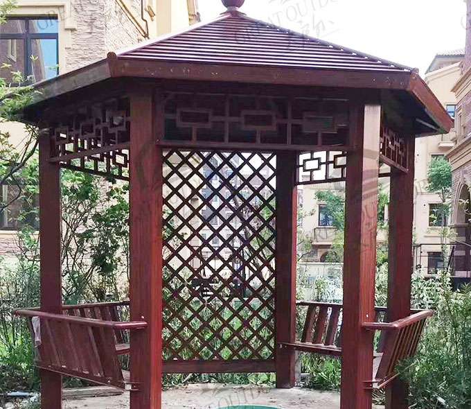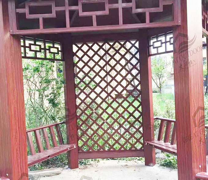厦门维安绿色农业发展有限公司凉亭系列产品是采用高强度铝合金为原材料,经酸洗铬化,电泳或静电喷涂,木纹转印处理后,精密定制设计,保障安装。它具有防水防潮,不膨胀不变形,防腐蚀,具有逼真的木质感。成为别墅住宅及市政园林等建筑美丽的风景。